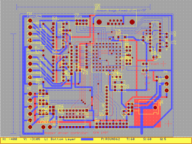 The only stand alone project using this card was an eye-tracker with a simple GUI inferface on the LCD - this device was also reprogramed to control a stepper motor controlled syringe. These are the PCBs I've done for Optometry up till may 1998