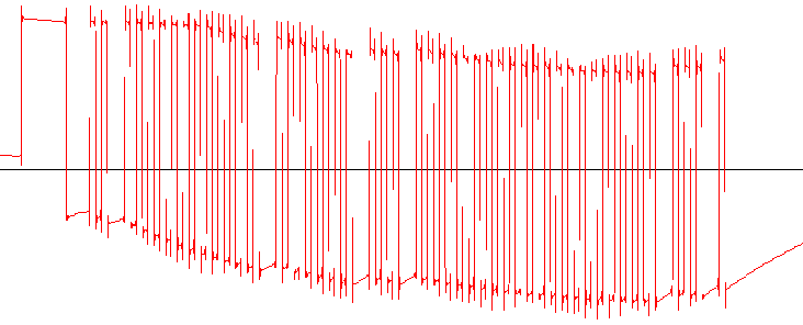 Here is a more detailed image of the start bits followed by a zero bit, a one bit and then lots of zeros.