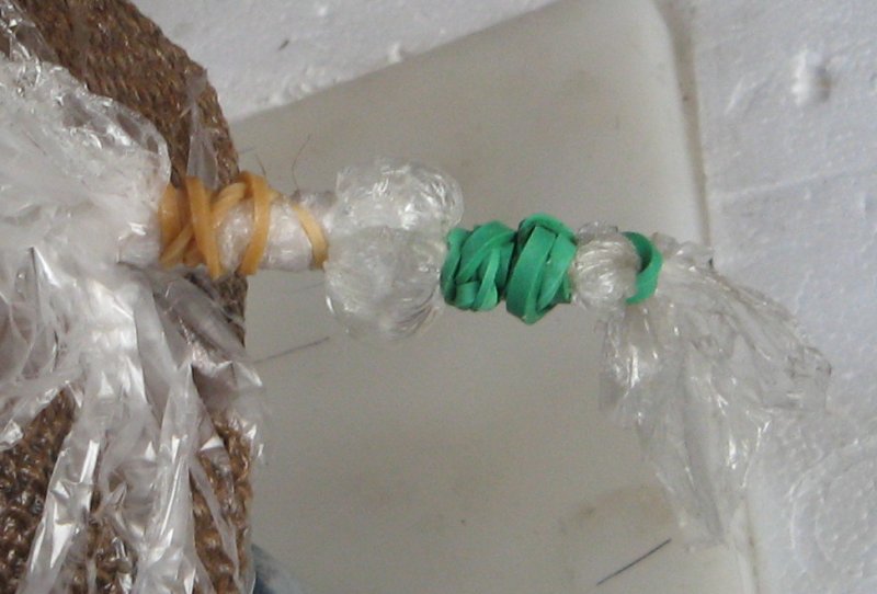 mouth of the plastic bag I sealed it in two places with rubber