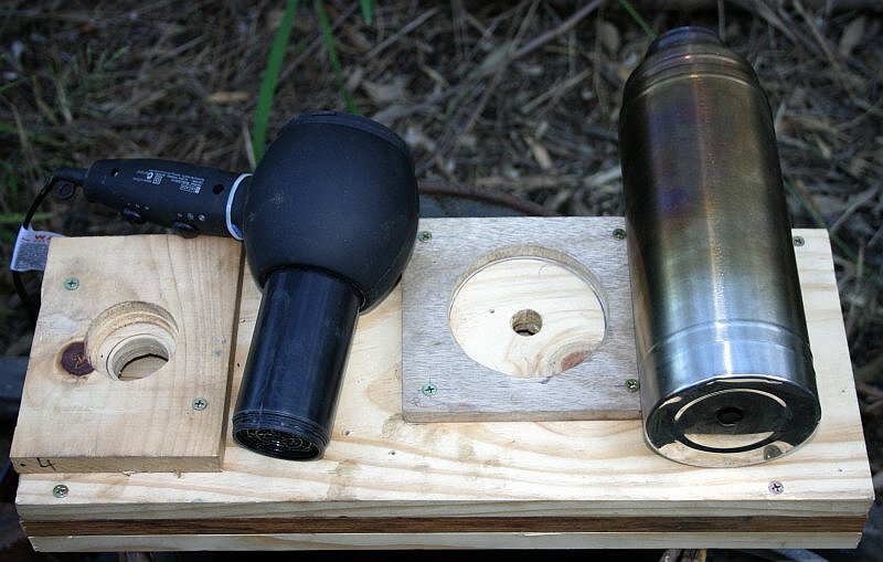 The blower I'd used was an 12 V air-bed inflater I'd bought from K-Mart for $18. I powered it from a small battery charger.