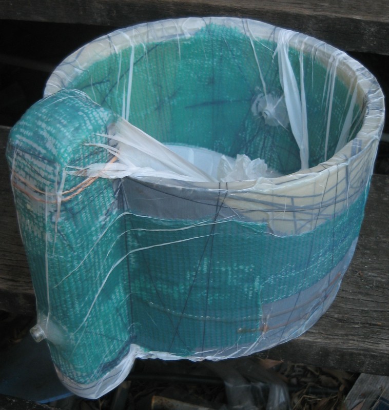 plastic bucket full of water and the remaining gap was filled with