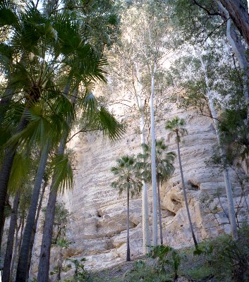 The white cliffs, white gums trees, cycads and cabbage palms along