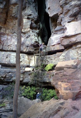 climbing the ladder you walk thru a crack in the rock a few metres