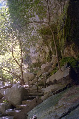 the end of the trail there is a ladder inside a cage. After