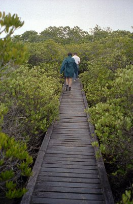 On the right you see the boardwalk over the mud and then it is a short sandy walk to the beach.